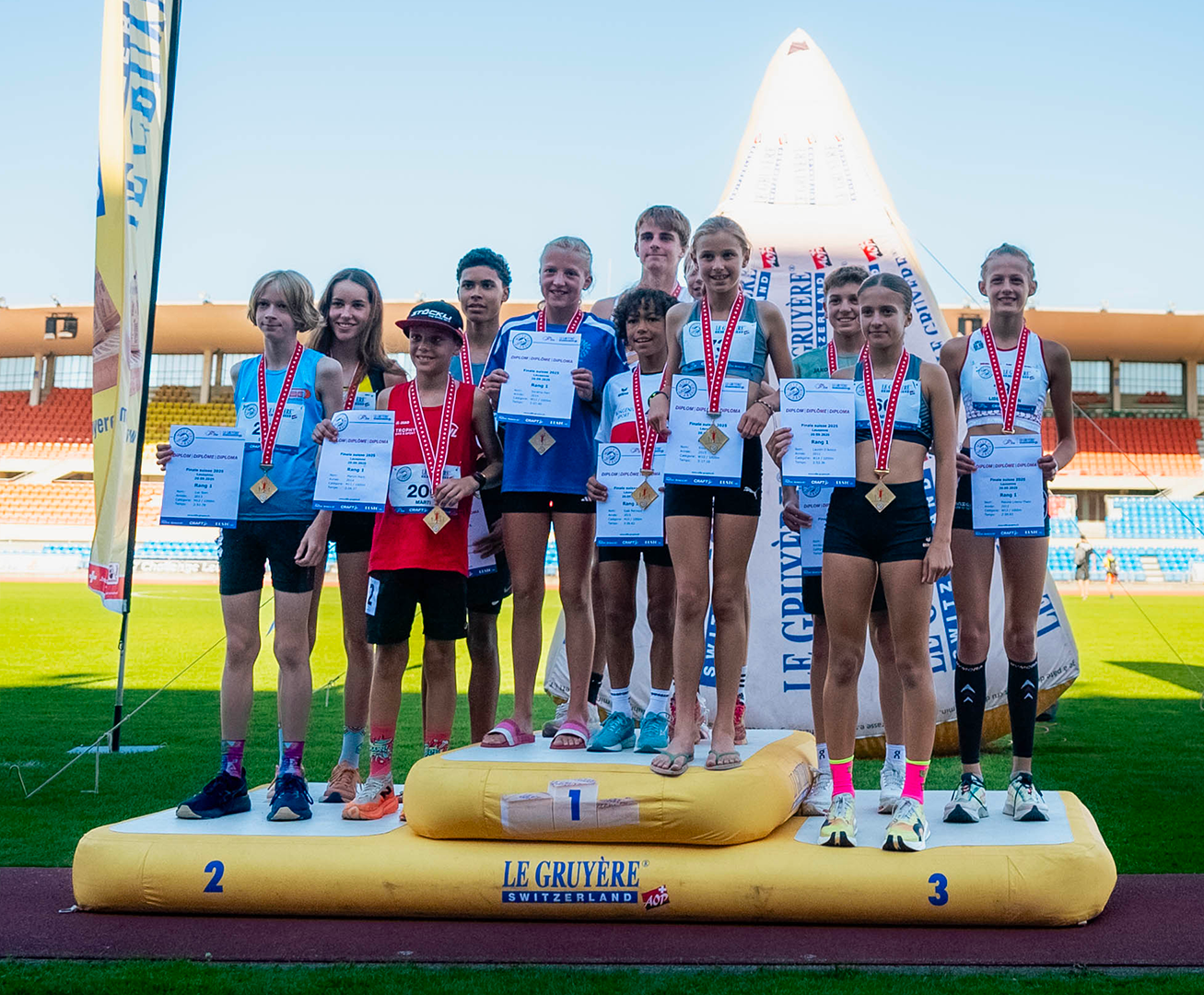Decrausaz et Aregger en toute fluidité à la Finale suisse du MILLE GRUYÈRE à Lausanne RÉSULTATS et VIDÉOS | La grande finale nationale du MILLE GRUYÈRE a eu lieu ce samedi sur un Stade olympique de la Pontaise bouillonnant à Lausanne. L’Yverdonoise Aimie Decrausaz (USY) et le Zurichois Marwin Aregger (LCZ) ont impressionné par leur belle foulée et temps canon de 2’43"98 et 2’31"40. Lors des 12 finales au programme, 11 meilleures performances suisses de la saison ont été battues. 4 Romands ont récolté l’or (9 podiums). Top 4, liens utiles et Replay des courses ci-dessous.