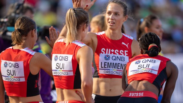 Oregon 22 | Jour 9 | Le relais de 4×100 m 7e, le 4×4 en FINALE, Kambundji et Zbären en demies EUGENE | Lors de la 9e journée des Mondiaux à Eugene, le relais national de tous les espoirs a déçu avec une modeste 7e place en 42"81 en finale du 4x100 m. L’équipe réalise le moins bon résultat de ces dernières années. Bel exploit par contre pour le 4x400 m, qui a créé la surprise de se qualifier pour la FINALE de demain. En individuel, les deux Bernoises Ditaji Kambundji et Noemi Zbären se sont hissées en demi-finales du 100 m haies. Résumé express ci-dessous. ATHLE.ch - 24 juillet 2022 - CNP Lausanne/Aigle, En stade, Eugene 2022, News, Textes Oregon 22 | Jour 9 | Le relais de 4×100 m 7e, le 4×4 en FINALE, Kambundji et Zbären en demies EUGENE | Lors de la 9e journée des Mondiaux à Eugene, le relais national de tous les espoirs a déçu avec une modeste 7e place en 42"81 en finale du 4x100 m. L’équipe réalise le moins bon résultat de ces dernières années. Bel exploit par contre pour le 4x400 m, qui a créé la surprise de se qualifier pour la FINALE de demain. En individuel, les deux Bernoises Ditaji Kambundji et Noemi Zbären se sont hissées en demi-finales du 100 m haies. Résumé express ci-dessous. ATHLE.ch - 24 juillet 2022 - CNP Lausanne/Aigle, En stade, Eugene 2022, News, Textes