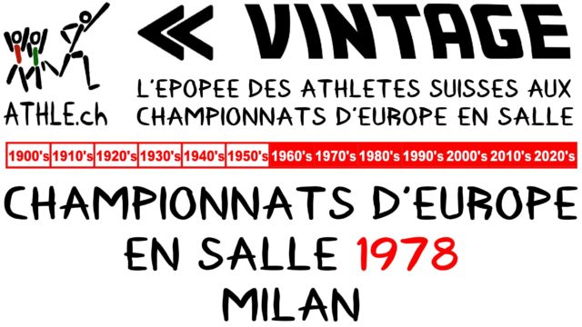 CHAMPIONNATS D’EUROPE EN SALLE Pour l'athlétisme suisse, les championnats d'Europe en salle représentent la plus belle opportunité de briller à l'échelon continental. ATHLE.ch VINTAGE retrace l'épopée des athlètes suisses au cours de cette compétition créée au milieu des années '60. La neuvième édition des championnats d'Europe en salle s'est disputée les 11 et 12 mars 1978 au Palasport di San Siro de Milan.
