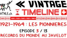 ATHLE.ch VINTAGE | TIMELINE LES PIONNIERES DE L'ATHLETISME SUISSE / EPISODE 4 | La mise en place de l'athlétisme féminin en Suisse ressemble à une longue et sinueuse route. Longtemps ignoré voire même moqué, le mouvement a mis du temps à se développer. ATHLE.ch VINTAGE propose de revenir sur une période d'une quarantaine d'années - de 1921 à 1964 pour être précis - afin de dépoussiérer l'histoire plus ou moins oubliée de celles qui ont vécu les débuts de l'athlétisme en Suisse. Le quatrième des treize épisodes de cette saga est consacré aux derniers exploits d'un autre temps.