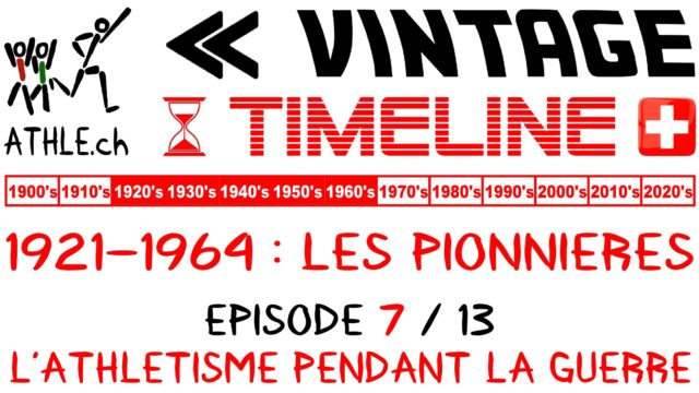 ATHLE.ch VINTAGE | TIMELINE LES PIONNIERES DE L'ATHLETISME SUISSE / EPISODE 7 | La mise en place de l'athlétisme féminin en Suisse ressemble à une longue et sinueuse route. Longtemps ignoré voire même moqué, le mouvement a mis du temps à se développer. ATHLE.ch VINTAGE propose de revenir sur une période d'une quarantaine d'années - de 1921 à 1964 pour être précis - afin de dépoussiérer l'histoire plus ou moins oubliée de celles qui ont vécu les débuts de l'athlétisme en Suisse. Le septième des treize épisodes de cette saga est consacré à l'athlétisme féminin pendant la guerre.