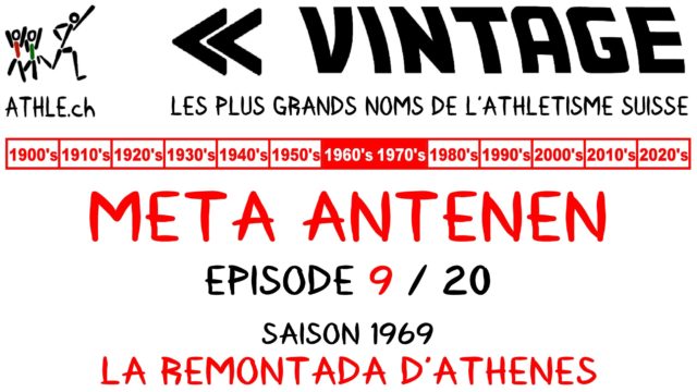ATHLE.ch VINTAGE | BIOGRAPHIE META ANTENEN / EPISODE 9 | Apparue au niveau national en 1964 à l'âge de 15 ans, Meta Antenen va rapidement atteindre le niveau européen en 1966, puis mondial dès 1968. ATHLE.ch VINTAGE propose de revivre la carrière exceptionnelle de Meta Antenen, la première icône féminine de l'athlétisme suisse. Le neuvième des vingt épisodes de cette biographie est consacré à la saison 1969, une grande année pour Meta Antenen qui réalise un exploit lors du pentathlon des championnats d'Europe à Athènes. PA Bettex - 3 mai 2020 - ATHLE.ch Histoire ATHLE.ch VINTAGE | BIOGRAPHIE META ANTENEN / EPISODE 9 | Apparue au niveau national en 1964 à l'âge de 15 ans, Meta Antenen va rapidement atteindre le niveau européen en 1966, puis mondial dès 1968. ATHLE.ch VINTAGE propose de revivre la carrière exceptionnelle de Meta Antenen, la première icône féminine de l'athlétisme suisse. Le neuvième des vingt épisodes de cette biographie est consacré à la saison 1969, une grande année pour Meta Antenen qui réalise un exploit lors du pentathlon des championnats d'Europe à Athènes. PA Bettex - 3 mai 2020 - ATHLE.ch Histoire