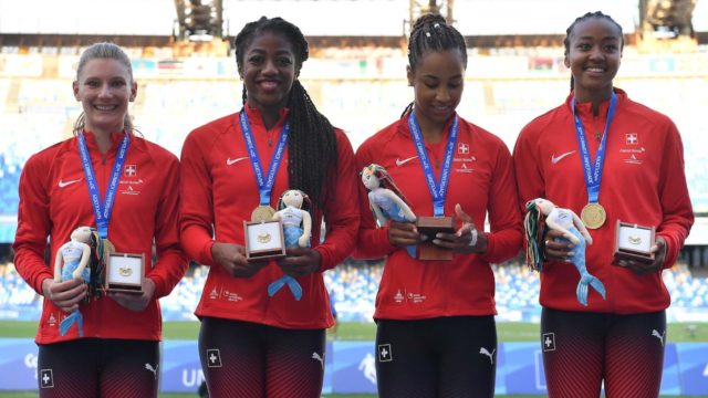 30ème Universiade d’été à Naples RÉSULTATS | Quatre athlètes vaudois ont participé à la 30ème Universiade d'été qui s'est déroulée à Naples. Les sprinteuses du Lausanne-Sports Sarah Atcho et Samantha Dagry ont été performantes avec le relais 4 x 100 m, Lore Hoffmann (ATHLE.ch) a manqué de peu le podium sur 800 m et Alain-Hervé Mfomkpa (Lausanne-Sports) a connu une blessure lors du 400 m haies. PA Bettex - 14 juillet 2019 - ATHLE.ch Régions | Vaud, Vaud : en stade 30ème Universiade d’été à Naples RÉSULTATS | Quatre athlètes vaudois ont participé à la 30ème Universiade d'été qui s'est déroulée à Naples. Les sprinteuses du Lausanne-Sports Sarah Atcho et Samantha Dagry ont été performantes avec le relais 4 x 100 m, Lore Hoffmann (ATHLE.ch) a manqué de peu le podium sur 800 m et Alain-Hervé Mfomkpa (Lausanne-Sports) a connu une blessure lors du 400 m haies. PA Bettex - 14 juillet 2019 - ATHLE.ch Régions | Vaud, Vaud : en stade