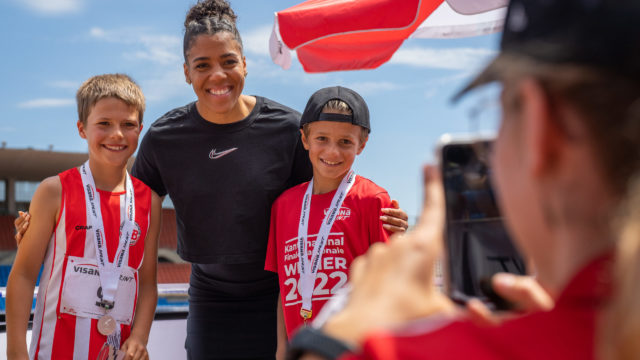 Finale suisse du Visana Sprint : les meilleurs jeunes sprinters en lice samedi à Winterthour ANNONCE | La grande Finale du Visana Sprint a lieu ce samedi à Winterthour. Une piste est déroulée tout exprès sur le Neumarktplatz en pleine vieille ville. 390 enfants de tout le pays, dont 78 Romands se sont qualifiés, chercheront à passer les tours et à grimper sur le podium. La championne d’Europe Mujinga Kambundji sera de la partie pour entourer les enfants ; tout comme PHUSIS et ATHLE.ch pour animer et médiatiser l’événement. Liste de tous les qualifiés romands ci-dessous. ATHLE.ch - 15 septembre 2022 - En stade, News Finale suisse du Visana Sprint : les meilleurs jeunes sprinters en lice samedi à Winterthour ANNONCE | La grande Finale du Visana Sprint a lieu ce samedi à Winterthour. Une piste est déroulée tout exprès sur le Neumarktplatz en pleine vieille ville. 390 enfants de tout le pays, dont 78 Romands se sont qualifiés, chercheront à passer les tours et à grimper sur le podium. La championne d’Europe Mujinga Kambundji sera de la partie pour entourer les enfants ; tout comme PHUSIS et ATHLE.ch pour animer et médiatiser l’événement. Liste de tous les qualifiés romands ci-dessous. ATHLE.ch - 15 septembre 2022 - En stade, News
