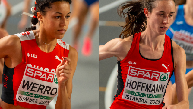 ISTANBUL 2023 | J1 | Hoffmann à la raclette et Werro en contrôle en demi-finales EURO INDOOR | Quatre coureurs suisses de 800 m étaient en lice lors de la première mini-session des Championnats d’Europe indoor à Istanbul. Les deux Romandes Lore Hoffmann (ATHLE.ch) et Audrey Werro (CA Belfaux) se sont toutes deux qualifiées pour les demi-finales. De manière très différente l’une de l’autre. ATHLE.ch - 2 mars 2023 - CNP Lausanne/Aigle, En stade, News